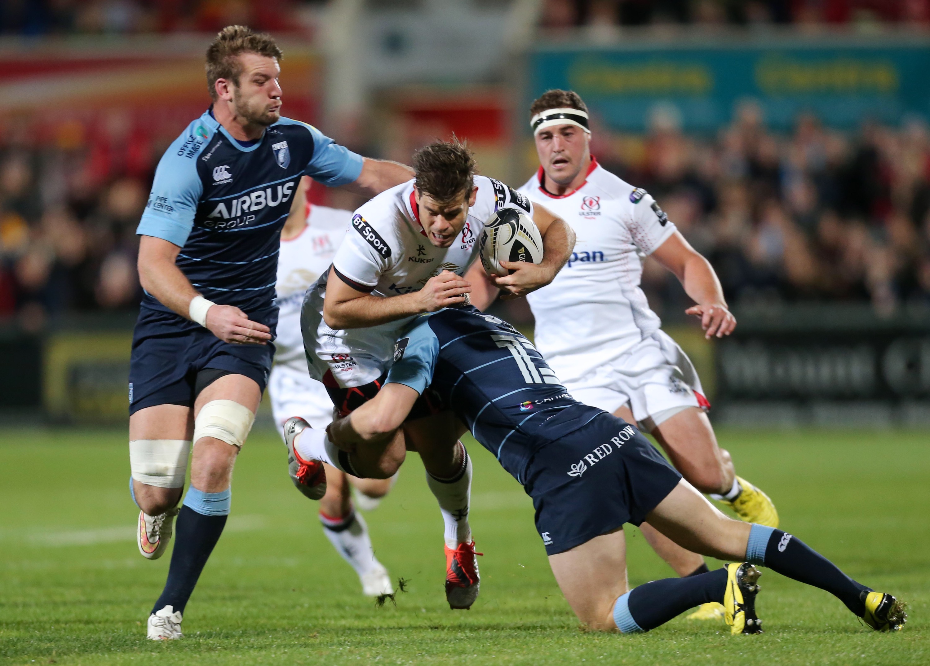 Onto the game and there was a painfully familiar feel to the first half. Cardiff dominated early on, first Patchell putting a penalty into the corner, before slotting one over the posts from the resulting line out drive infringement. The game settled down and Ulster gradually started to dictate play, number 8 Nick Williams, who I shall refer to as ‘the coward’ throughout after his hit of that nature on Patchell last year, carrying strongly to get the home side quick ball. Fly-half Ian Humphries floated a lovely ball out wide that found Andrew Trimble over in the corner. However, the Cardiff fighting spirit was still going even this late on the tour and Patchell came back with two penalties. The fighting spirit though, is no match for an incompetent referee as it turns out, and just like at Leinster, Ben Whitehouse was again all over the poor decisions. The first, and real shocker, was a penalty given against Dan Fish for just competing a high ball with Trimble. This resulted in a line out in the corner, a catch and drive, and Turnbull went into the bin for pulling down the maul. Nick Williams picked and drove from the scrum, leaving scrum half Marshall to dive over from a yard, although whether he would’ve been stopped by the obstructed Patchell is a question for Whitehouse. Humphreys added the extras and the Ulstermen led 12-9 at half-time.