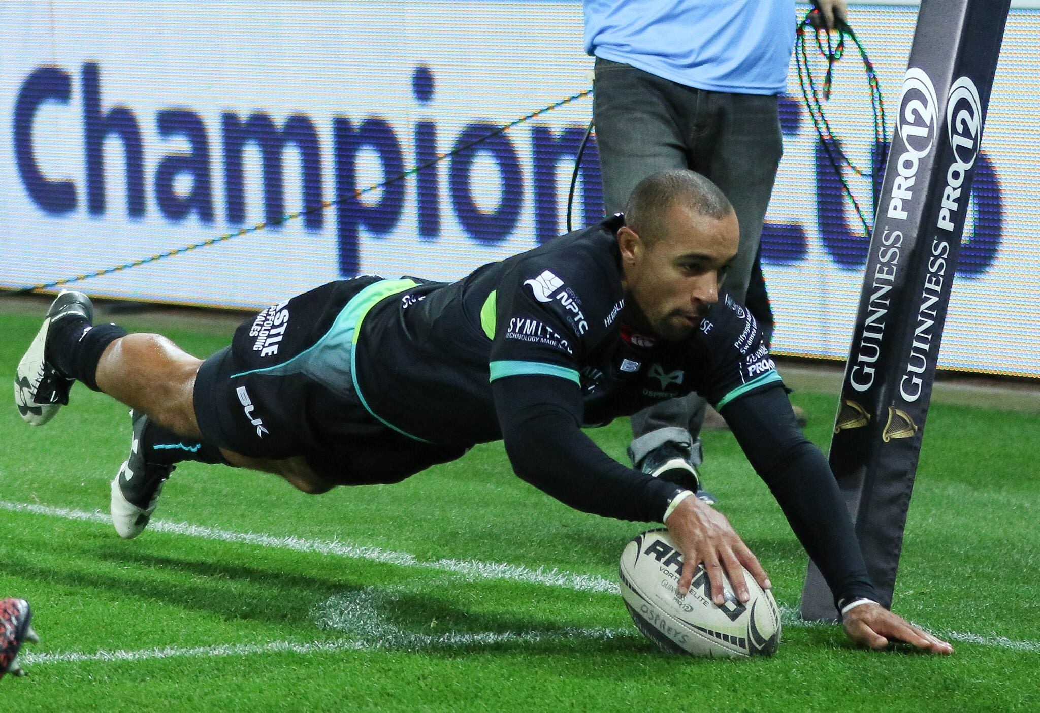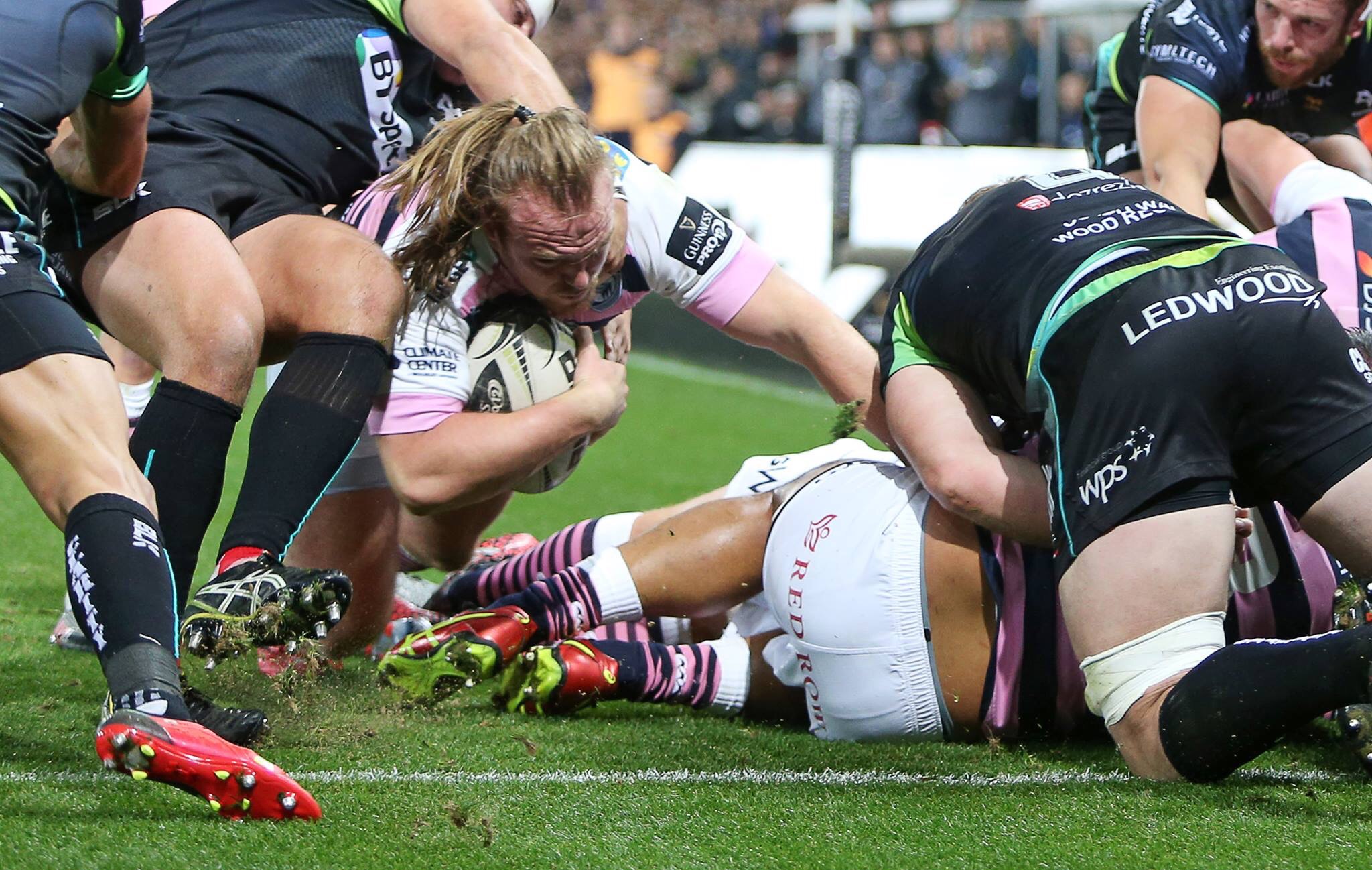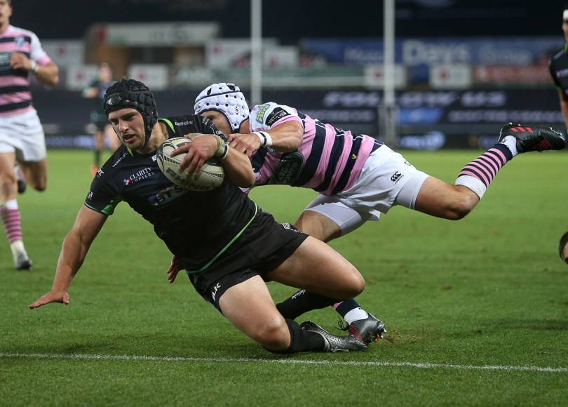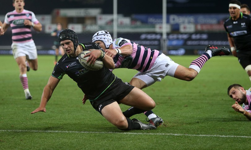 This gave the Ospreys the opportunity to dominate possession and soon they were crossing the line again as, for the second time in the game, Rey Lee-Lo was caught rushing out of the line and not stopping Sam Davies’ pass which this time found Josh Matavesi and was moved onto a late arriving Dan Evans.