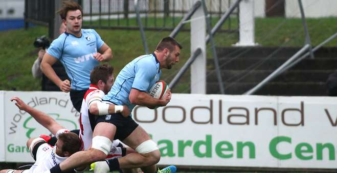 In an intensely close first half the teams could not be split as three Johnny McPhillips penalties gave the home side the slimmest of leads despite winger Kyle Evans’ try and Gareth Thompson’s conversion. However the big talking point of the half was Samoan international Pele Cowley getting sent-off thanks to two yellow cards just before the break.