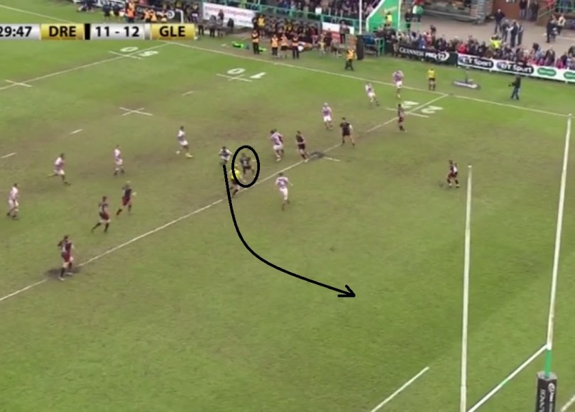As you can see in these pictures they get Tyler Morgan outside of Willis Halaholo on the outside blitz, meaning Rhun Williams and Rey Lee-Lo have to come inside to stop him breaking and Pat Howard has plenty of space to travel up to the Cardiff 10m line.