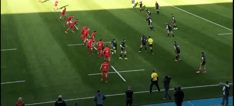 The drift defence takes any impact the screen pass may have away, as it happens deep enough from the defensive line to allow Saracens to read it and drift beyond it.