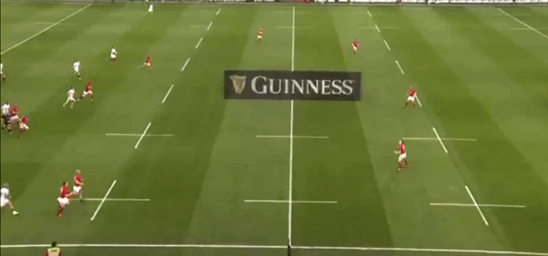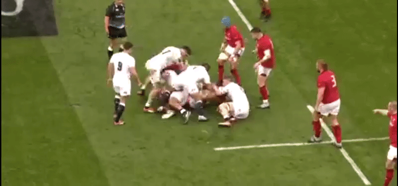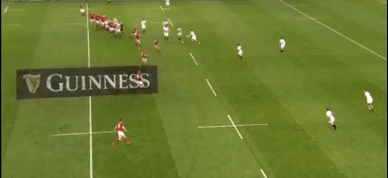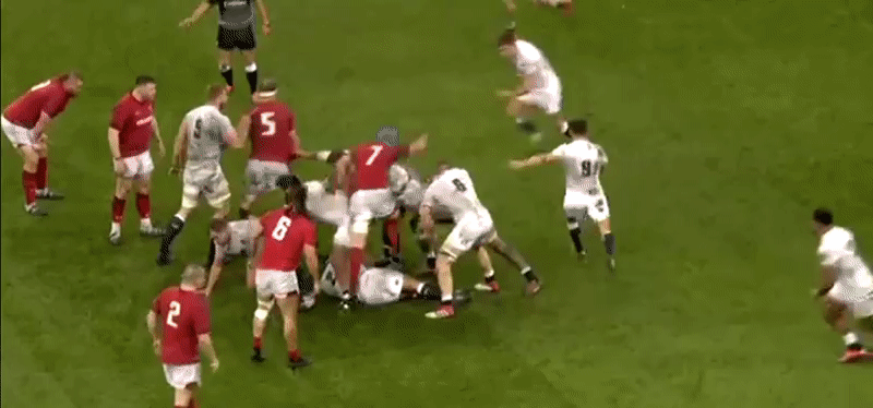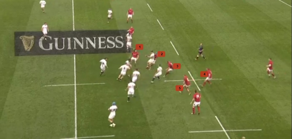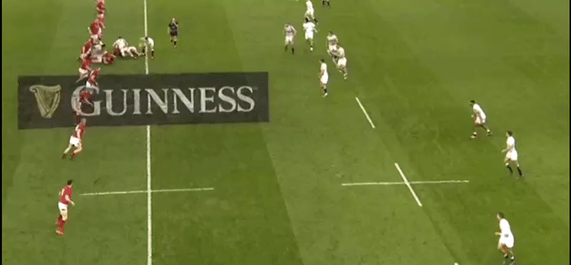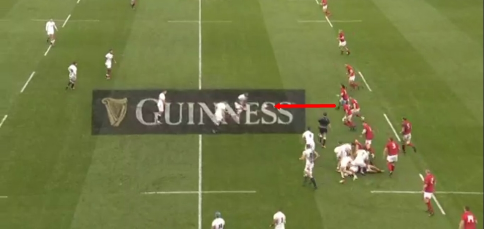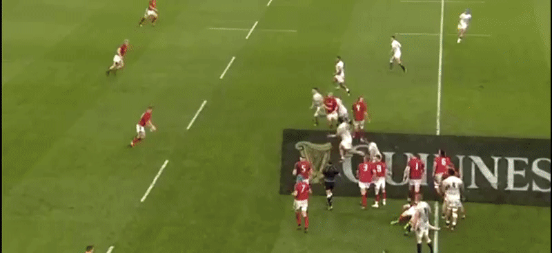 They don’t just stop there though, as the number eight is stopped in his tracks and the Wales initial defence are able to blitz hard as a result, taking on the England carrying game which was fabled as much as their kicking game during pre-game discussions in the media.