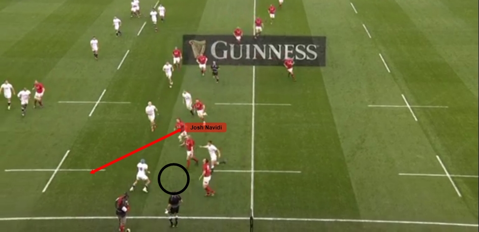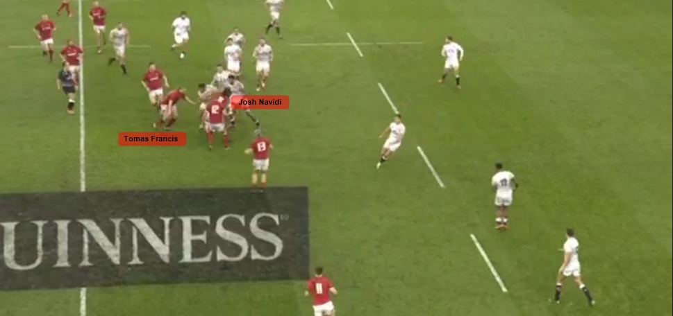 The simple reason is that Jack Nowell and Jonny May aren’t actually the strongest wingers when it comes to the aerial game, so Wales simply dropped a player in behind the England chaser, Josh Navidi in this case.