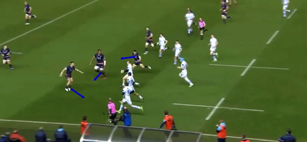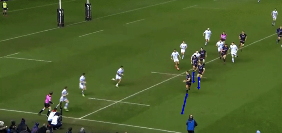 At the same time Cardiff Blues played into their hands, killing a lot of our own space with the miss pass, putting extra focus on the already lateral aspect of the attack