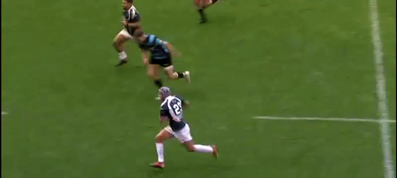 Without wishing to compare or put any pressure on, the way he carries is reminiscent of Stuart Hogg, especially in the second clip as he identifies a mis-match against a prop and makes a line break with the ball in two hands before putting the winger into space.