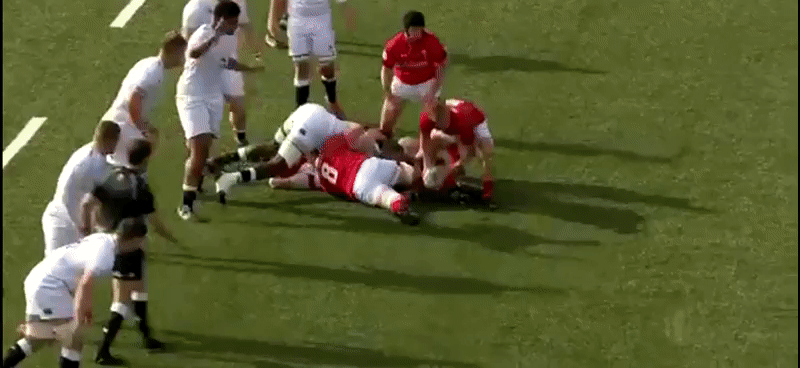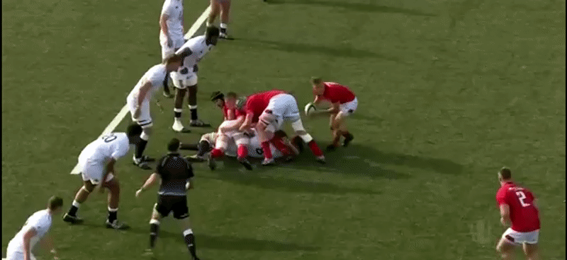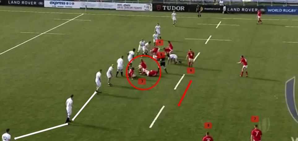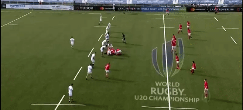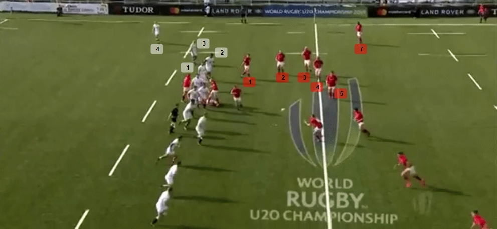 However, as the ball comes back the forwards from the phase before have not worked around to get into any sort of formation, with Wales ending up looking at a seven-forward blindside up against four England defenders, on the wrong side of the breakdown from their backs.