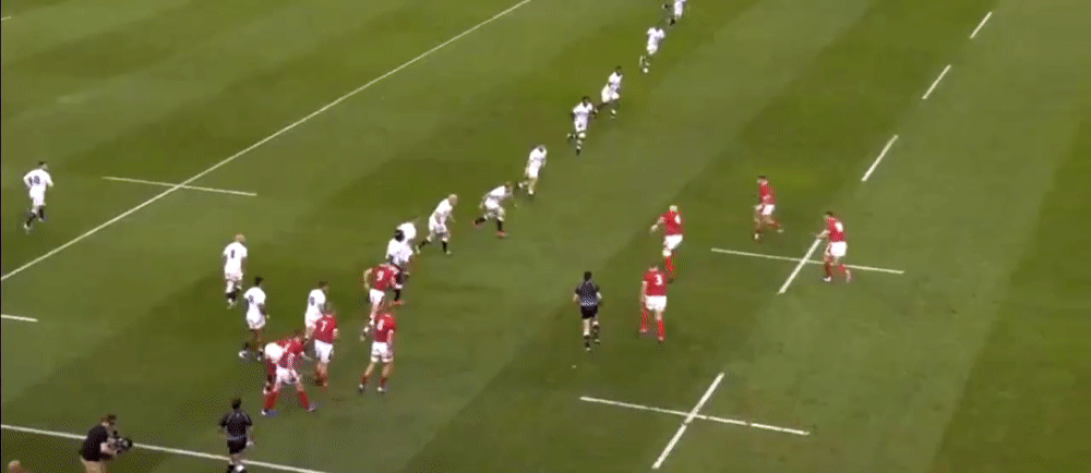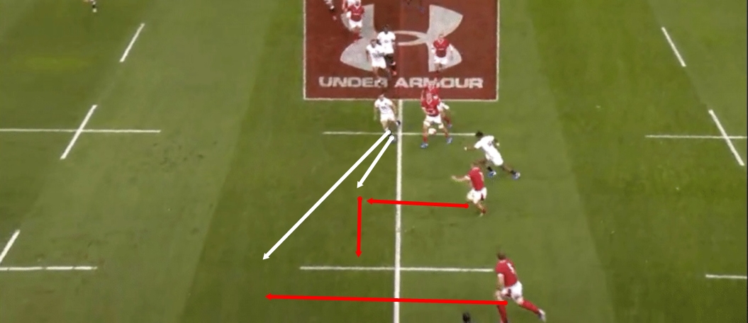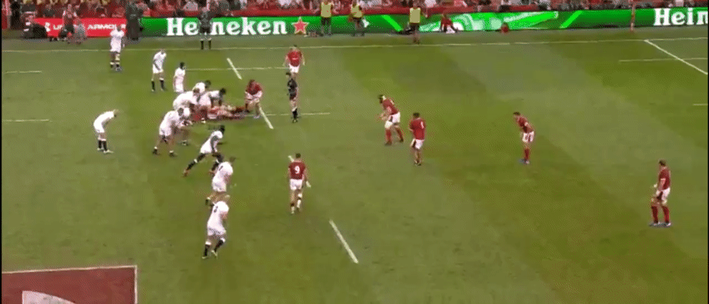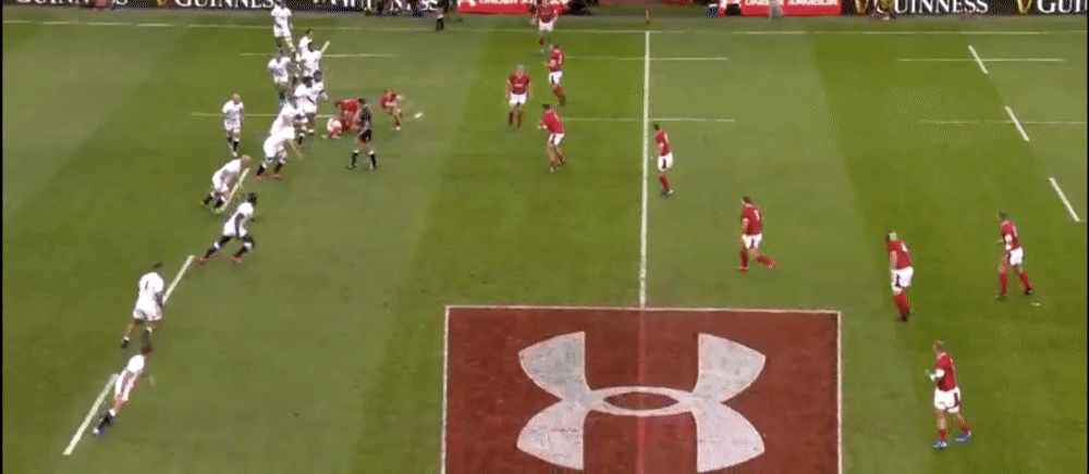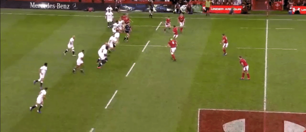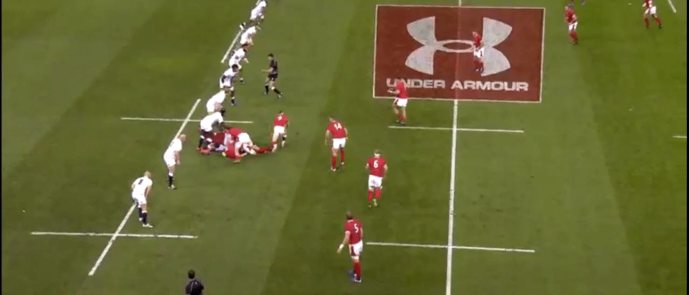If this ball goes to James Davies, he can draw the tackle from the covering English defender before moving possession on to Alun Wyn Jones who could subsequently run clear down the wing.