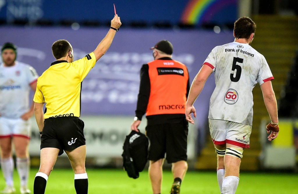 Then we move on to round two, and Ulster’s Iain Henderson is sent off against Ospreys for a shoulder charge on Dan Evans. Once again it’s a pre-meditated offence in the sense that a breakdown contest is over, Evans is standing over his team-mate securing the ball and Henderson chooses, with little open of gaining anything, to plant his shoulder on the chin.