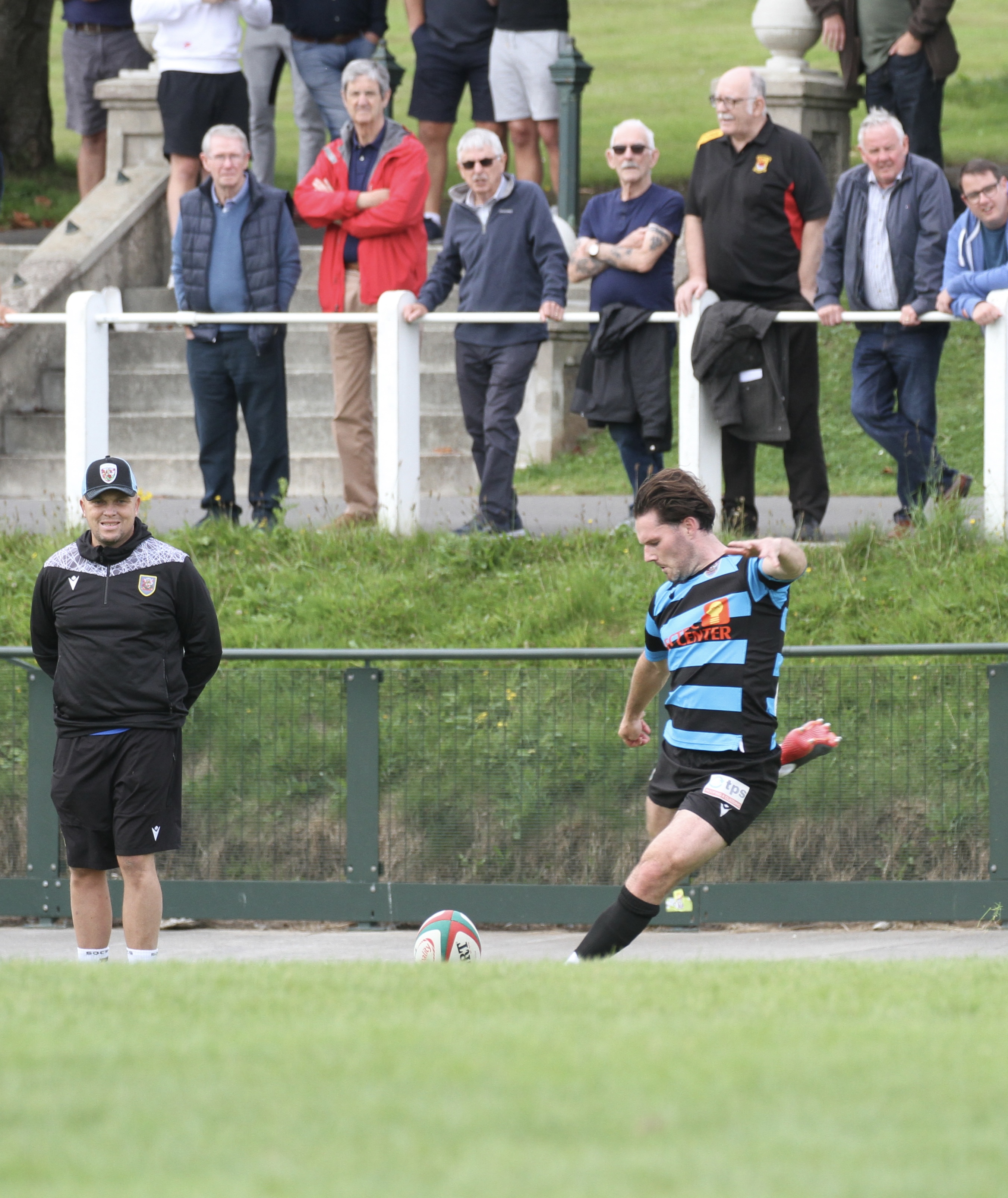 The Blue and Blacks were able to hold the line despite the Carmarthen onslaught though, and eventually got an attacking opportunity of our own when Jacob Beetham’s high kicked bounced into his grasp. Although his offload for Ryan Wilkins didn’t go to hand, the field position allowed Jack Maynard to level the scores after the hosts infringed following a Barney Nightingale half-break.