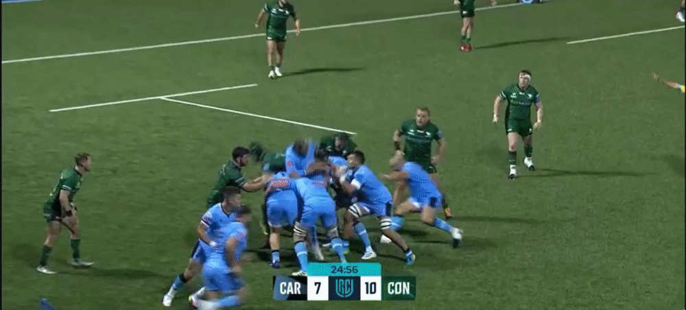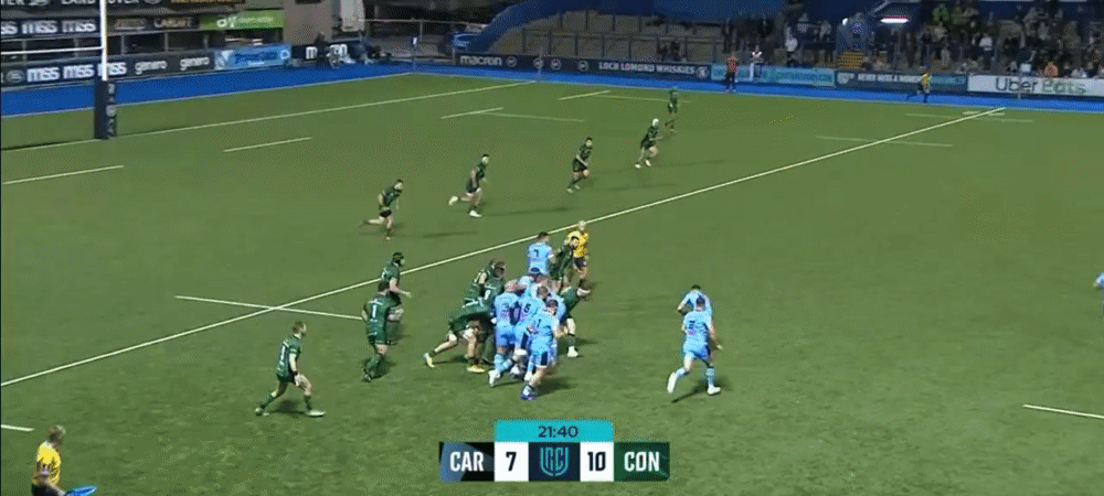 It’s noticeable as well that, in the second clip, Lloyd Williams is stood behind the breakdown looking a little lost as Cardiff really struggled to find our feet on the back of Jarrod Evans going off. Slow ruck speed and standing starts for the forwards make it easy for Connacht to win the turnover in the end.