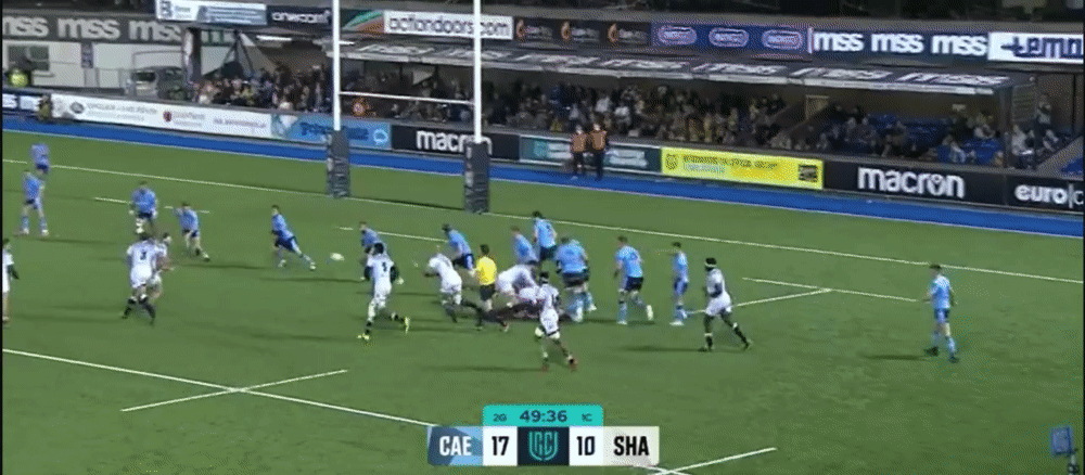 In each clip in the phase following Myhill’s carry we’re either getting over the gainline through a quick pick-and-go, or the scrum-half is able to move the ball quickly away from the tackle area and play into the backs who are on the front foot and up against a defence struggling to get around the corner and form up quickly.