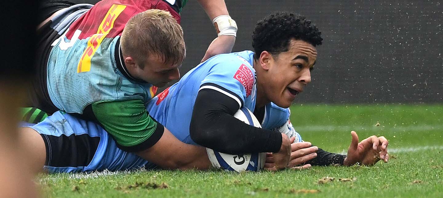 To finish off a back-and-forth opening quarter the Quins hit back in style as Smith scorched through the Cardiff defence, exchanged passes with Alex Dombrandt and scored a fine try which he proceeded to convert, and added a penalty shortly after.