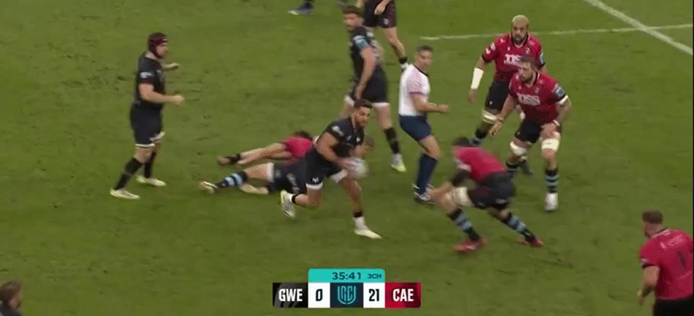 A low centre of gravity, good body height around contact and a surprising turn of pace allow him to make his mark on the carrying game, either by going himself or drawing defenders and popping the ball away just ahead of the tackle. There’s a reason he was briefly covering hooker for Cardiff last year, because his skillset lends itself to distributing the ball well.