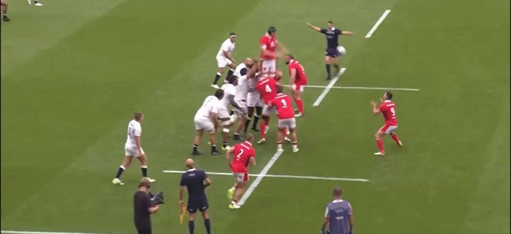 There’s more to be said about Wales’ selection and how it impacted the ability of the players within the centre pairing, but we start with Tompkins and Roberts in a defensive setting, and getting a bit over-excited early on in proceedings.
