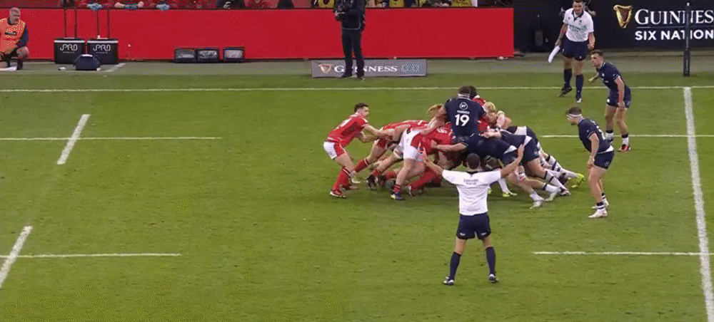 The knock-on impact of that narrowing of the first phase strike plays, over-reliance on kicking and incorrect use of personnel is that the Scottish defence found it very easy to form up and repel the Welsh attack. With the forwards sluggish to come around the corner anyway as the phase play develops, they are constantly working from slow ball and with little variation.