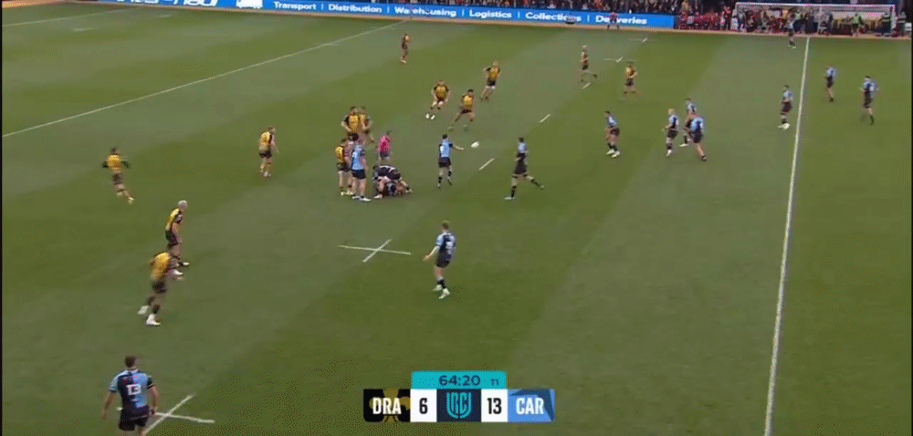 Opting not to clip up every standard lineout win I don’t have multiple clips of Belcher’s lineout throwing, but his much greater game time in the United Rugby Championship during 2023/24 has coincided with an improved Cardiff lineout performance, going from an 81% lineout success rate the previous year to 85% in the 12 months just gone.