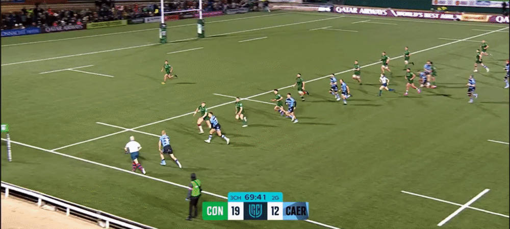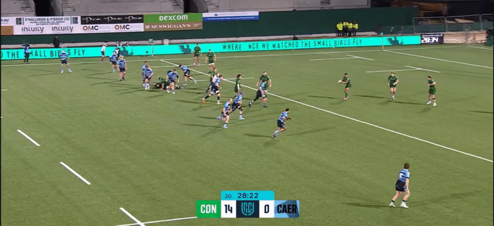 So far this season he has 249 minutes of United Rugby Championship action, yet has made 40 tackles in that time, meaning he’s making a tackle roughly once every 6.25 minutes. That would see him average almost 13 tackles a game, quite remarkable stats for a scrum-half. Usually it’s not ideal to have your half-back putting in that much defensive work, but as we’ll see it doesn’t detract from his attack at all.
